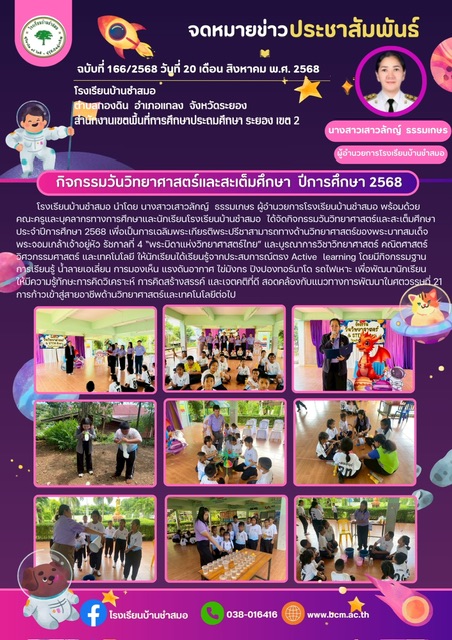 โรงเรียนบ้านชำสมอ นำโดย นางสาวเสาวลักญ์ ธรรมเกษร ผู้อำนวยการโรงเรียนบ้านชำสมอ พร้อมด้วยคณะครูและบุคลากรทางการศึกษาและนักเรียนโรงเรียนบ้านชำสมอ ได้จัดกิจกรรมวันวิทยาศาสตร์และสะเต็มศึกษาประจำปีการศึกษา 2568