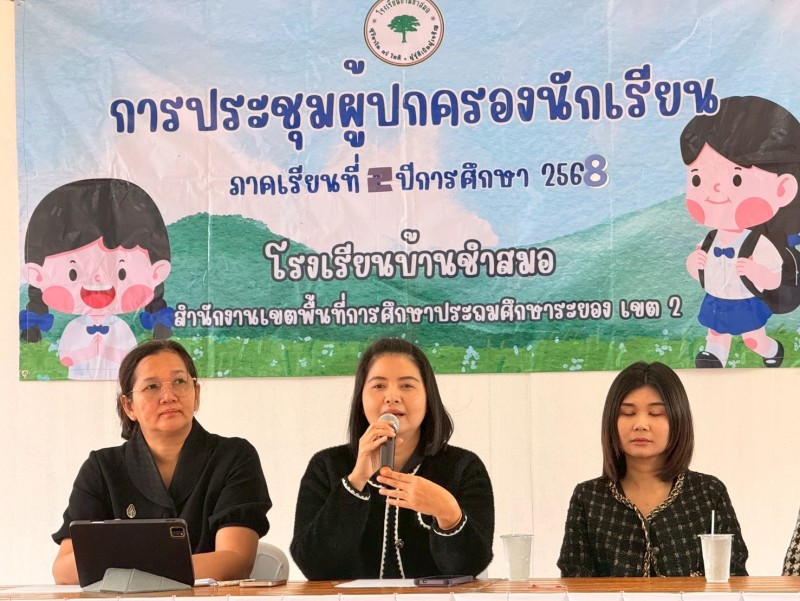 โรงเรียนบ้านชำสมอ นำโดยนางสาวเสาวลักญ์ ธรรมเกษร ผู้อำนวยการโรงเรียบบ้านชำสมอ พร้อมด้วยคณะครูได้ดำเนินการจัดการประชุมผู้ปกครอง ภาคเรียนที่ 2 ประจำปีการศึกษา 2568